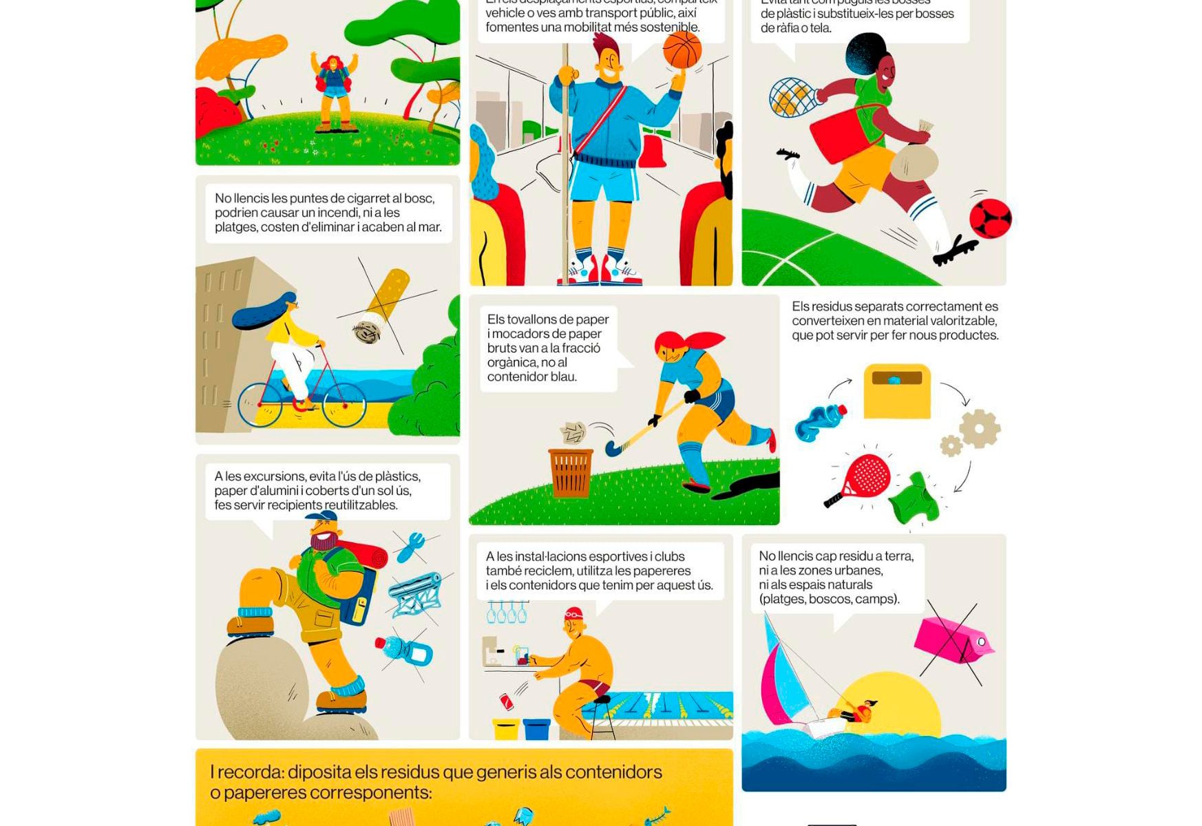El projecte, que es porta desenvolupant des de finals del 2022, preveu la instal·lació de punts de recollida selectiva amb papereres de envas i paper I cartró a les instal·lacions de les federacions i els seus clubs a Catalunya. Així mateix, es realitzaran campanyes de sensibilització i formació dirigides a les diferents federacions en l‘ambit del esport sostenible per fomentar la recollida selectiva i el reciclatge.